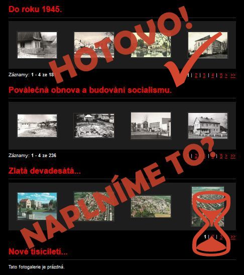 Jelikož historické fotografie zveřejňujeme již dlouhých dvanáct let, dostali jsme se do situace, kdy nám pomalu docházejí obrázky z nejstaršího období, které na stránkách prezentujeme v sekci „Do roku 1945“. Archivy bohužel nejsou bezedné, proto je čas posunout se dále a věnovat se více mladším obdobím. Kromě sekce „Poválečná obnova a budování socialismu“ tak začneme plnit i sekci „Zlatá devadesátá“ s fotkami z let 1989 – 1999 a ožije i sekce „Nové tisíciletí“ se snímky od roku 2000.
